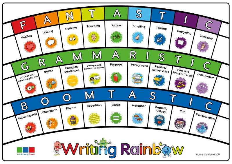 We are using 'The Write Stuff' teaching approach from Jane Considine, which provides a scaffold for children to base their own writing. We make use of the 'writing rainbow' in order to plan and draft our writing. For our English lessons, we have 4 writing lessons per week using Jane Considine’s ‘The Write Stuff’. We look at narrative/non-fiction maps to see at an overview of the topic and practise writing during sentence stacking lessons. We then plan and write an alternative version of the genre we’ve been learning. For 1 lesson per week, we practise grammar skills linked to each year group’s National Curriculum objectives. Outside of our English lessons, we also practise our reading comprehension skills every day and practise our letter formation and letter joins during handwriting sessions 2 times per week.